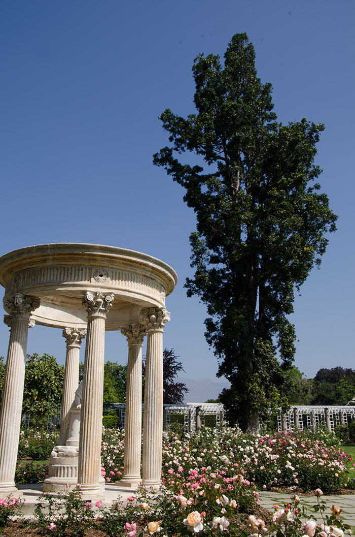 Transplanted in 1908 to make way for construction of the Huntington mansion, the towering Queensland kauri (Agathis robusta) has thrived in the Rose Garden ever since.
