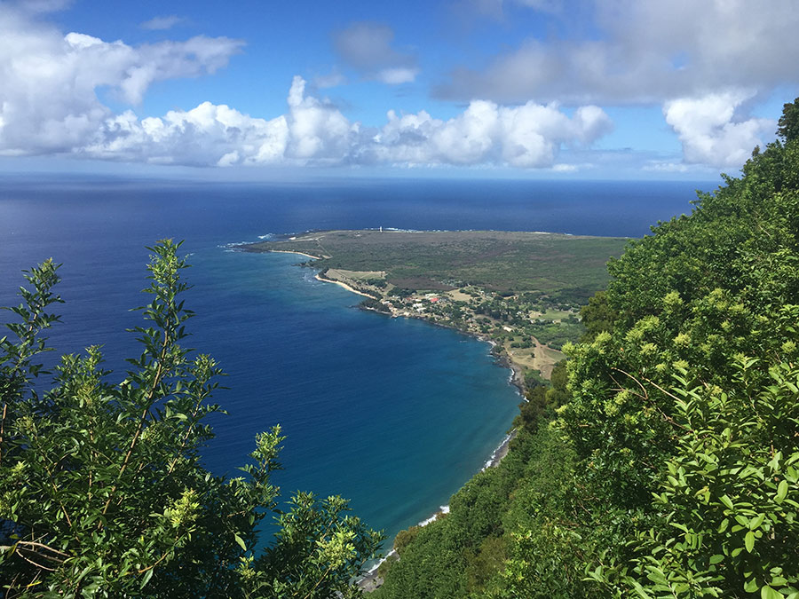 Looking down on the Kalaupapa peninsula from Molokai pali, August 2016. Photo by Jenny Watts. Looking down on the Kalaupapa peninsula from Molokai pali, August 2016. Photo by Jenny Watts.