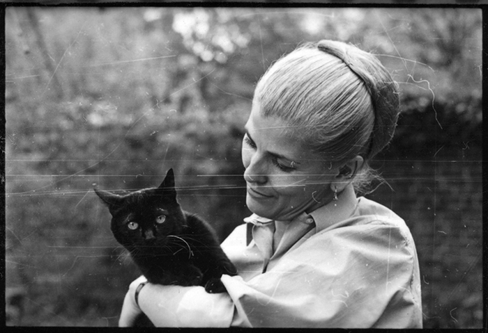 Elizabeth Jane Howard with black cat, ca. 1965. The Huntington Library, Art Collections, and Botanical Gardens.