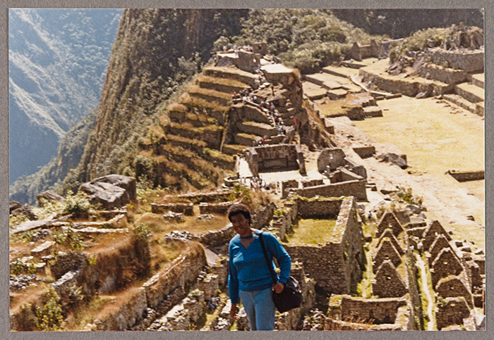 Butler in Machu Picchu, unidentified photographer, 1985. Butler traveled to Peru to conduct research for her Xenogenesis/Lilith’s Brood trilogy, which takes place in a post-apocalyptic rain forest and in and alien space vessel. The Huntington Library, Art Collections, and Botanical Gardens.