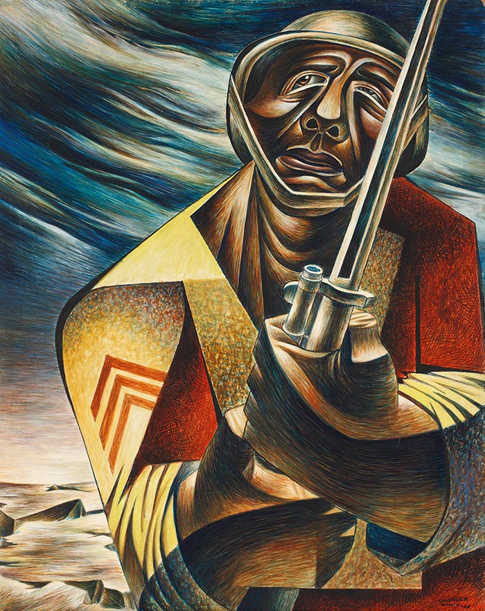 Charles White (1918–1979), Soldier, 1944, tempera on masonite, 30 x 25 in. The Huntington Library, Art Collections, and Botanical Gardens. © 1944 The Charles White Archives.
