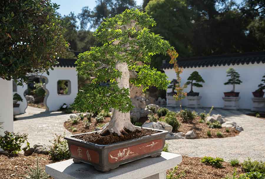 A penjing stands in the Verdant Microcosm, a new courtyard built to display a collection of the miniaturized plant landscapes in The Huntington’s Chinese Garden. Photo by Jamie Pham.