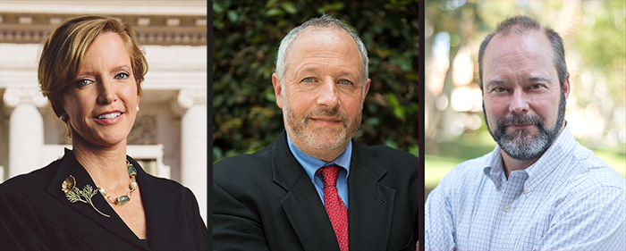Left: Laura Skandera Trombley, president of The Huntingon. Photo by Meeno. Middle: Peter Mancall, Andrew W. Mellon Professor of Humanities and vice dean for the humanities and sciences at USC Dornsife, and Linda and Harlan Martens Director of the of EMSI. Photo by Peter Zhaoyu Zhou. Right: William Deverell, professor of history at USC Dornsife and director of ICW. Photo by Peter Zhaoyu Zhou.